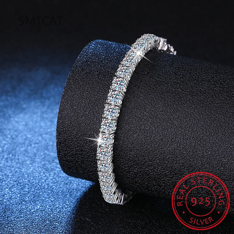 S925 الفضة البلاتين مطلي أساور Charm للنساء ، مويسانيتي سوار ، شخصية بسيطة ، مجوهرات الزفاف هدية ، جودة عالية